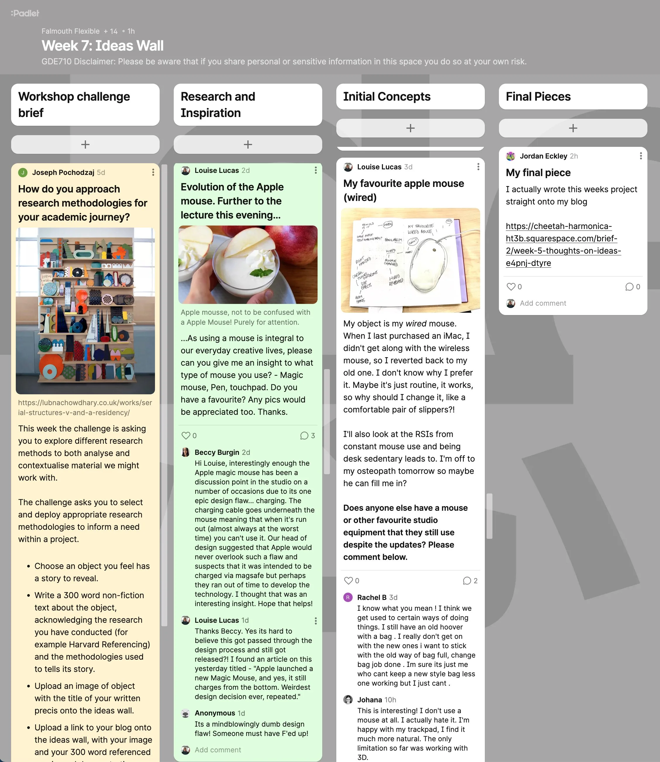 Easy, I thought. There must be loads of information about Apple products. But after googling ‘apple mouse’, I realised I had opened a big can of worms with too much information available. I realised I needed to revert to Martin's Lecture and work out a process to break down its importance.