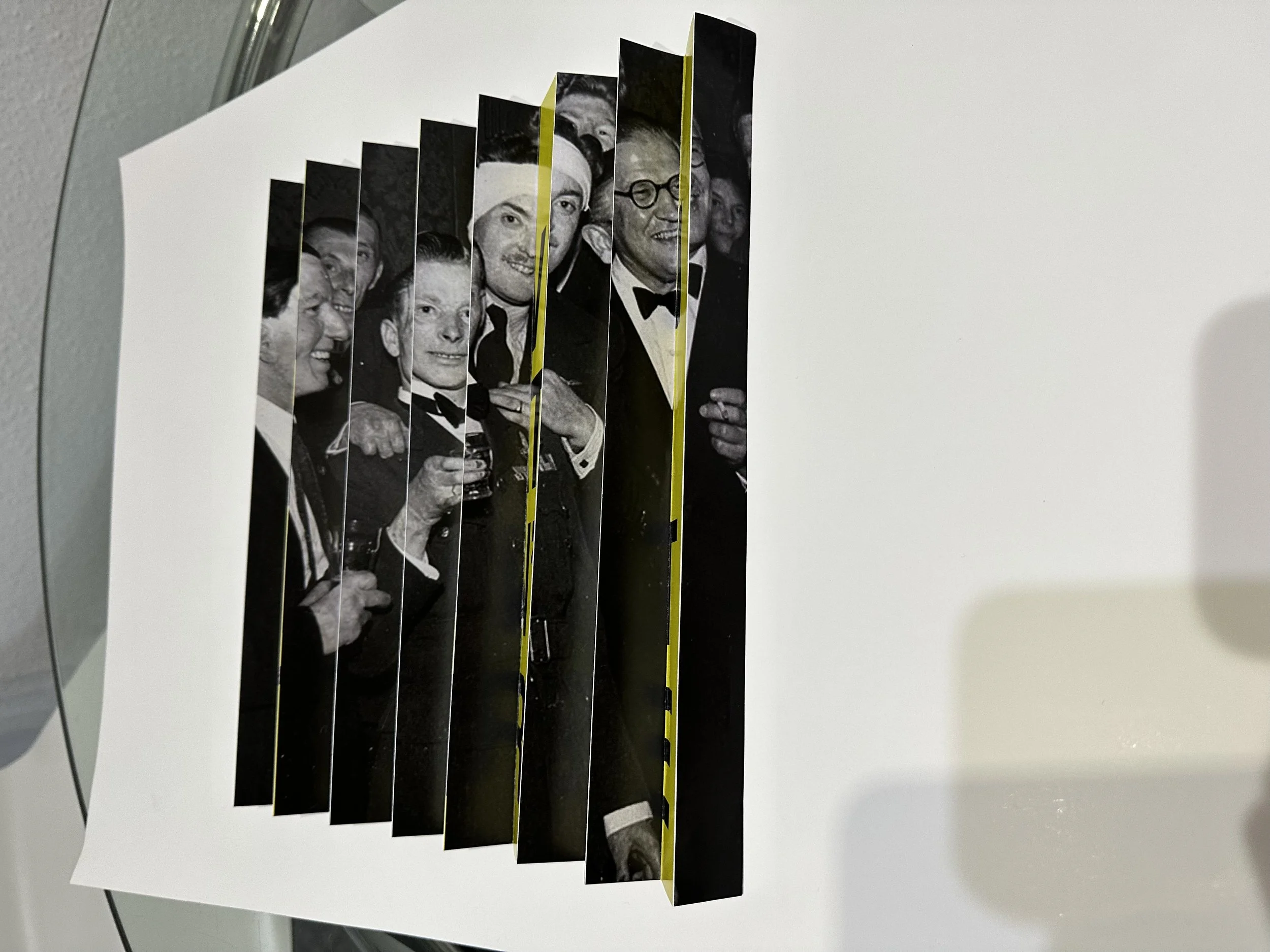 So the lenticular will display 2 sides. Look, and don’t look. One displays the slogan reminder that East Grinstead was ‘the town that didn’t stare’, and the other side shows a close-up of the pioneering ‘Guinea Pigs’ facial reconstruction and plastic surgery.